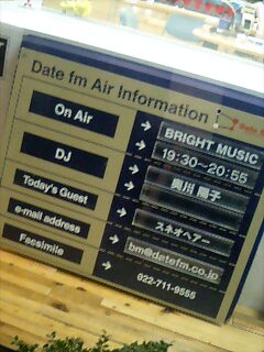 多分私たちは映っていないでしょうが、そのうちdateFMのサイトに奥川さん&スネオの写真も載ると思います。